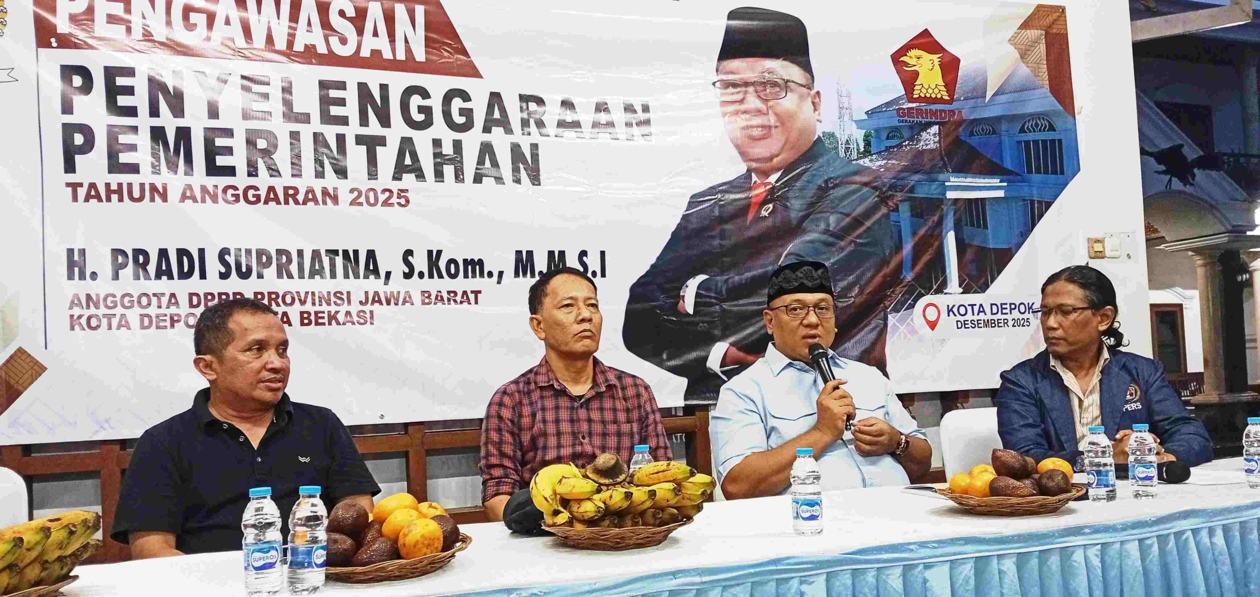 — Anggota DPRD Provinsi Jawa Barat dari Fraksi Gerindra, Pradi Supriatna, menegaskan komitmennya untuk terus mendorong penyelesaian berbagai persoalan pembangunan di Kota Depok. Hal tersebut ia sampaikan dalam kegiatan Pengawasan Penyelenggaraan Pemerintahan yang digelarnya bersama puluhan wartawan Persatuan Wartawan Indonesia (PWI) Kota Depok di Pradi Centre, Kukusan, Beji, Jumat (5/12/2025).