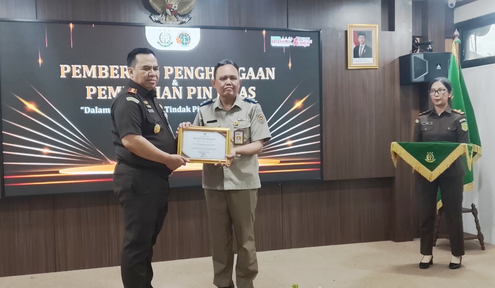 Dari penghargaan yang diperoleh, Kajari Depok Arif Budiman juga mengucapkan terima kasih atas pemberian pin emas dalam penyelesaian tindak pidana pertanahan yang diberikan Pemerintah Pusat khususnya Kemen ATR/BPN kepada Kajari Depok.