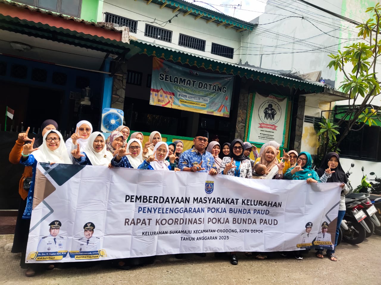 ~ Kelurahan Sukamaju, Kecamatan Cilodong, Kota Depok, melalui Pemberdayaan Masyarakat Kelurahan menyelenggarakan Rapat Koordinasi Pokja PAUD Kelurahan Sukamaju bersama Bunda PAUD pada Rabu, 17 Desember 2025. Kegiatan ini berlangsung di PAUD Anyelir Tiga, Perumahan Villa Pertiwi, Jalan Belimbing 5 No. 24, RT 03/16, Sukamaju, Depok.