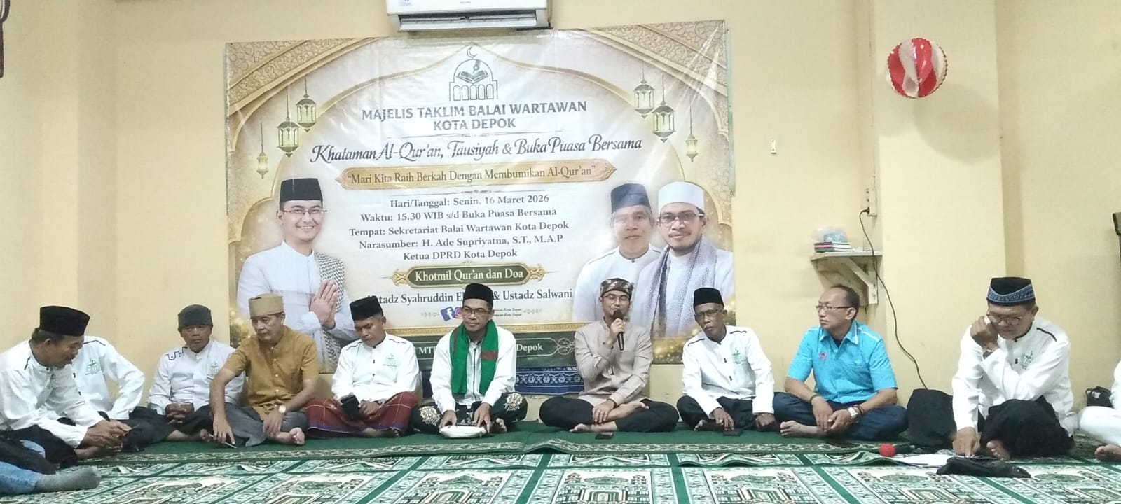 – Dipenghujung Ramadan 1447 Hijriah, Majelis Taklim Balai Wartawan Kota Depok sukses menggelar kegiatan Khataman Al-Qur’an yang dirangkai dengan Tausyiah dan Buka Puasa bersama. Ini merupakan program yang kedua kalinya dilaksanakan dalam rangka turut menyemarakan Bulan Suci Ramadan 1447 Hijriah dengan mengangkat tema ‘Mari Kita Raih Berkah Dengan Membumikan Al-Qur’an’, Senin (16/03/2026).